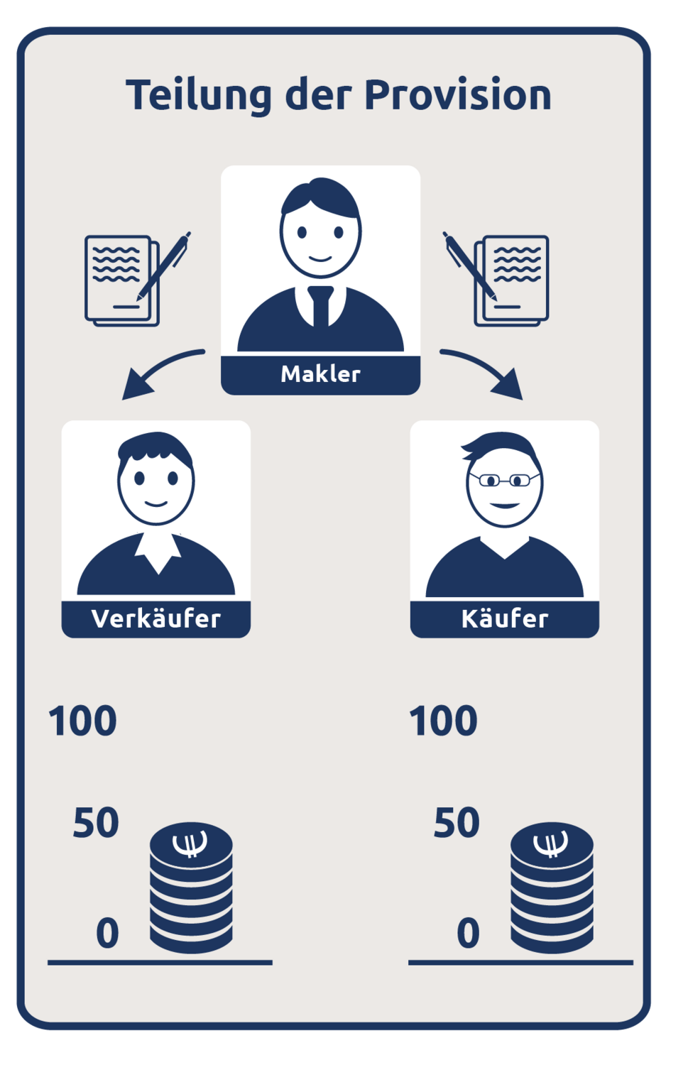 Es gibt unterschiedliche Modelle. Der Makler wird entweder nur vom Verkäufer bezahlt oder vom Verkäufer und Käufer. Bei keinem Modell zahlt der Käufer mehr als die Hälfte der vereinbarten Provision.